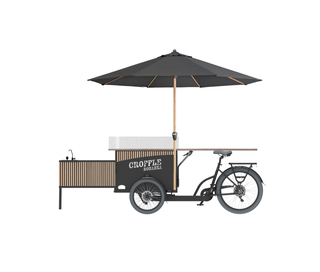 Das Croffle Bonanza Foodbike ist ein wahres Meisterwerk an Mobilität und Flexibilität. Mit einer beeindruckenden Arbeitsfläche von über 3 Metern lässt es sich problemlos an jedem gewünschten Ort positionieren. Jedes Detail dieses Foodbikes wurde mit großer Sorgfalt exklusiv für Croffle Bonanza entworfen und modifiziert. Ausgestattet mit einem integrierten Waschbecken und einem speziell angefertigten Croffle-Eisen, garantiert es die perfekte Zubereitung unserer einzigartigen Croffles. Erlebe handgemachten Genuss und Qualität, wo immer du bist, mit dem Croffle Bonanza Foodbike!